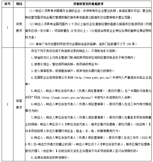 3.1本次招商要求響應人必須同時具備的資格要求詳見下表: